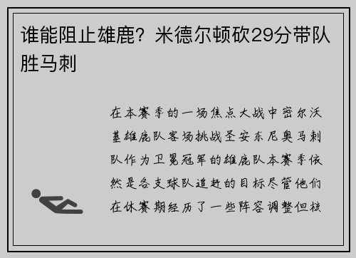 在刚刚结束的NBA常规赛中,密尔沃基雄鹿队在主场以120-105的比分战胜休斯顿火箭队,继续稳居东部榜首。这场比赛不仅展示了雄鹿队的强大实力,更让球迷们看到了他们在通往总冠军道路上的坚定决心。 这场比赛,雄鹿队一开局就展现了强烈的进攻欲望和防守韧性。在首节比赛中,雄鹿队凭借字母哥扬尼斯·安特托昆博的出色发挥,迅速拉开比分差距。字母哥在这场比赛中表现得尤为出色,全场拿下了35分、12个篮板和7次助攻...